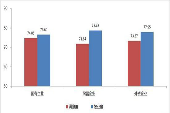 “國企員工滿意度高,敬業(yè)度低?!比涨?,有數據顯示,相對于民營企業(yè)和外資企業(yè),國有企業(yè)的員工對公司的滿意度最高,但卻是最不敬業(yè)的。而民營企業(yè)對公司的滿意度最低,卻是最敬業(yè)的。